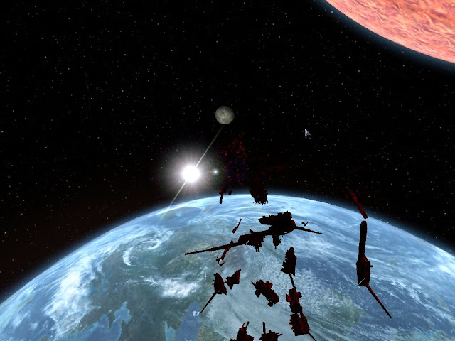 Found numerous youtube vids and this is my fav. Nothing says epic while ships are duking it out inside a planets ice rings.